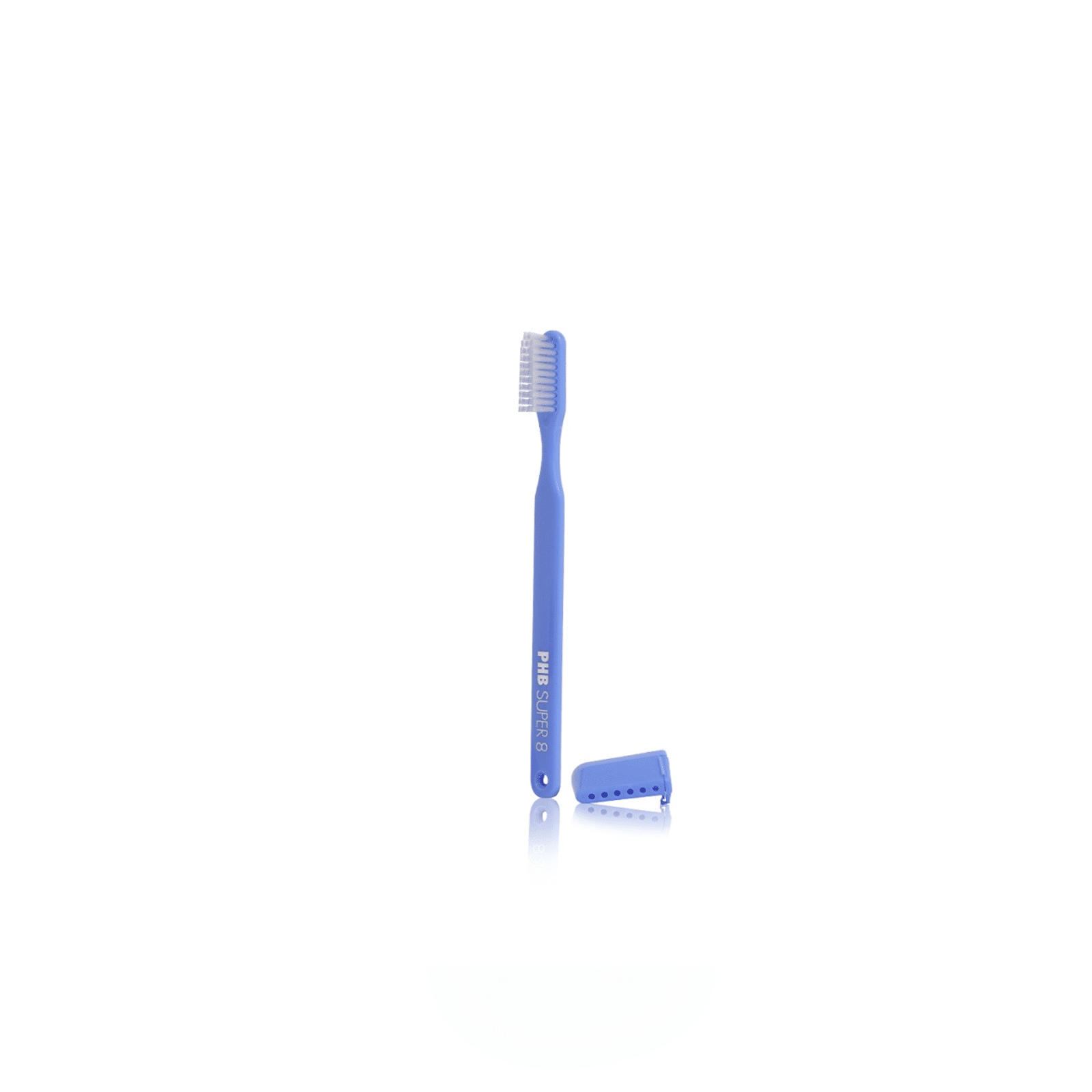 - El capuchón protector del cepillo dental PHB® Super 8 Medio, aísla los filamentos de contaminaciones externas, manteniendo las condiciones óptimas de higiene, a la vez que mantiene agrupados los filamentos prolongando la durabilidad del cepillo.