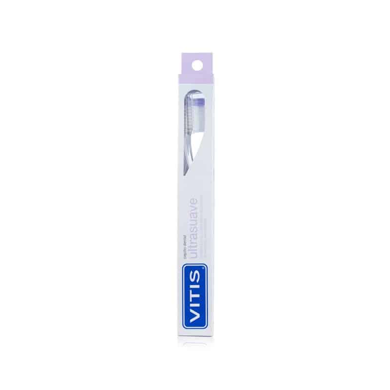 Descripción: VITIS® ultrasuave es un cepillo con filamentos ultrasuaves y de perfil recto que permiten una adecuada higiene bucal después de una cirugía. La suavidad de sus filamentos elimina eficazmente el biofilm oral (placa bacteriana), respetando cuidadosamente la zona de la intervención.