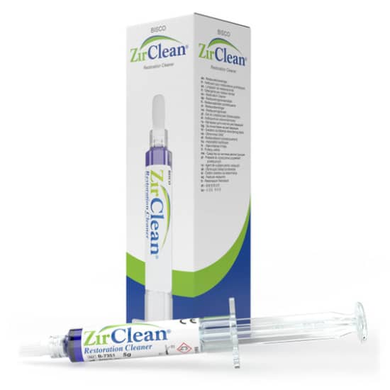 ZirClean es un limpiador extraoral de superficies de restauraciones cerámicas, de zirconio y metálicas pretratadas que se han contaminado durante las pruebas intraorales.