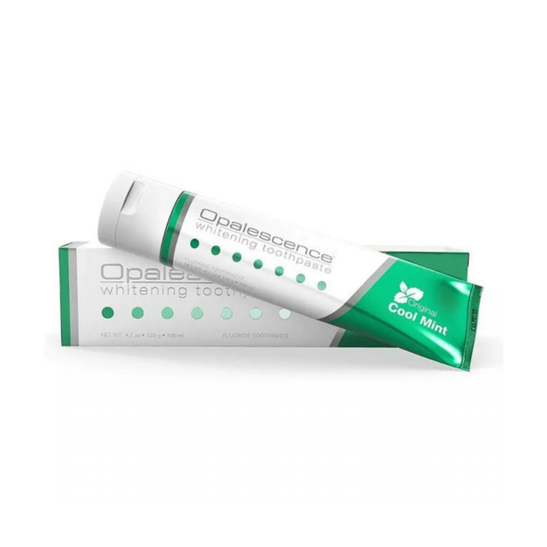 La pasta dental blanqueadora Opalescence es ideal para mantener el tono brillante de los dientes una vez blanqueados. Su fórmula exclusiva se caracteriza por tener muy baja abrasividad y por favorecer la retención de flúor en el esmalte, gracias a su 0,25% de fluoruro de sodio (aproximadamente 1100 ppm de iones de flúor). Además de aclarar las piezas dentales hasta dos tonos en un mes y ayudar a reducir la gingivitis, combate las manchas superficiales.
