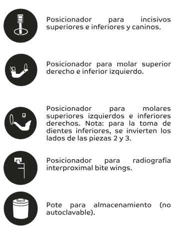 - Posicionador Cone es utilizado para la orientación del ángulo en los procedimientos de rayos X , peridoncia y endodoncia en las imágenes radiográficas.