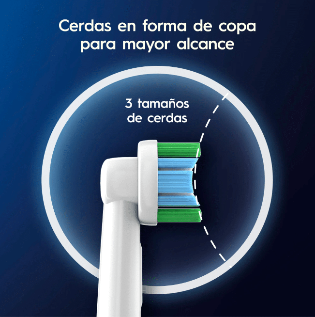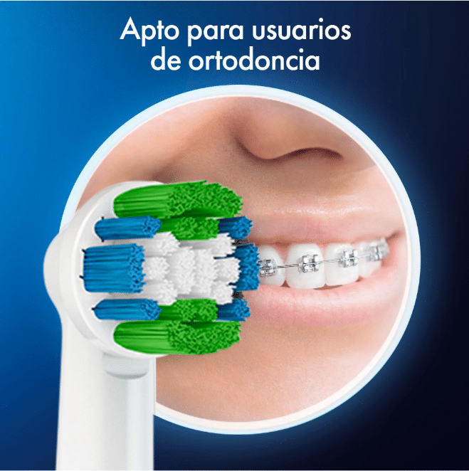 - El repuesto del cepillo eléctrico Oral-B Pro serie Advanced Clean, tiene un cabezal redondo que rodea cada diente para una limpieza superior entre los dientes, eliminando hasta el 100% de la placa de manera eficaz, en comparación con un cepillo de dientes manual. Además, sus cerdas Control-Bac, te muestran el momento de cambiar el cepillo y sus filamentos en forma de “X” permiten un mayor alcance y limpieza excepcional.